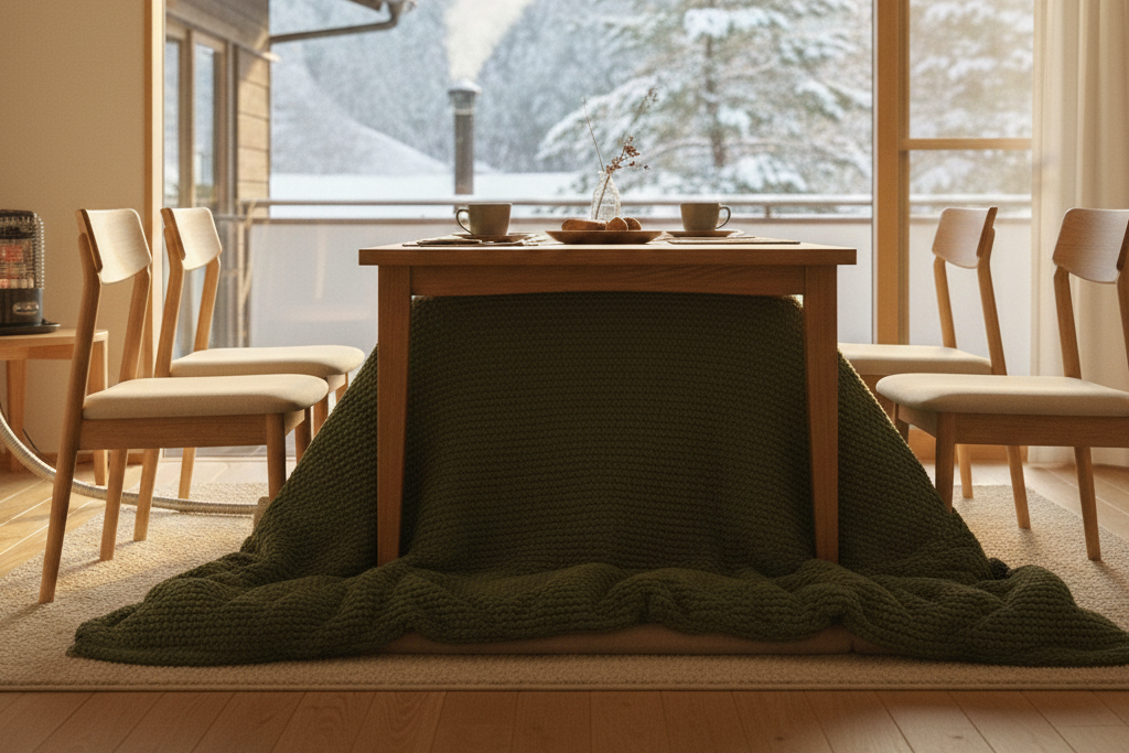 また、通常のこたつではなくダイニングこたつにしたことで、椅子に座ってごはんを食べながらこたつでぬくぬくすることができています。ダイニング型なら、「うっかりこたつで寝てしまう」なんてこともないのでおすすめです。